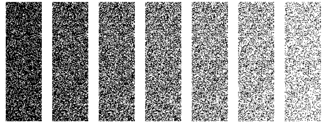 图3 使车速数据在路段和天两个维度进行随机地缺失,其中,白色小方块表示缺失数据,从左到右,缺失率以10%为间隔从20%到80%增加。